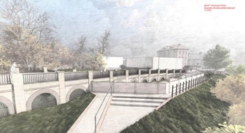 The team initially explored a long list of flood risk reduction options like attenuation and channel improvements as well as raised flood defence options. The final and most viable option consists of a combination of demountable flood barriers and permanent raised walls with glass panels on top to maintain views across the river.