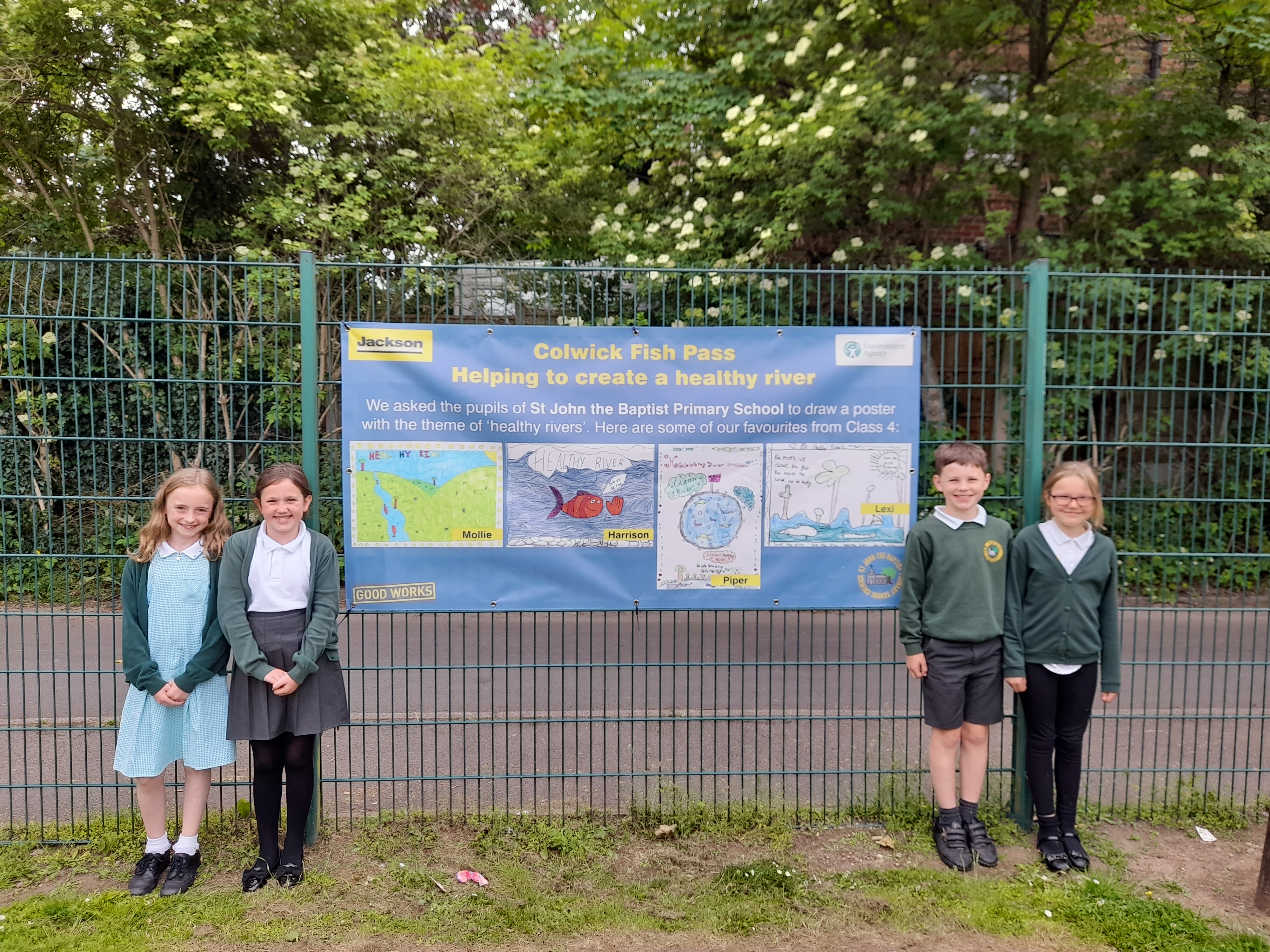 Children from St John the Baptist Primary School in Colwick have designed banners to show how important the River Trent is for wildlife and why we need healthy rivers. They have now been displayed near the site to help inform people about the project.