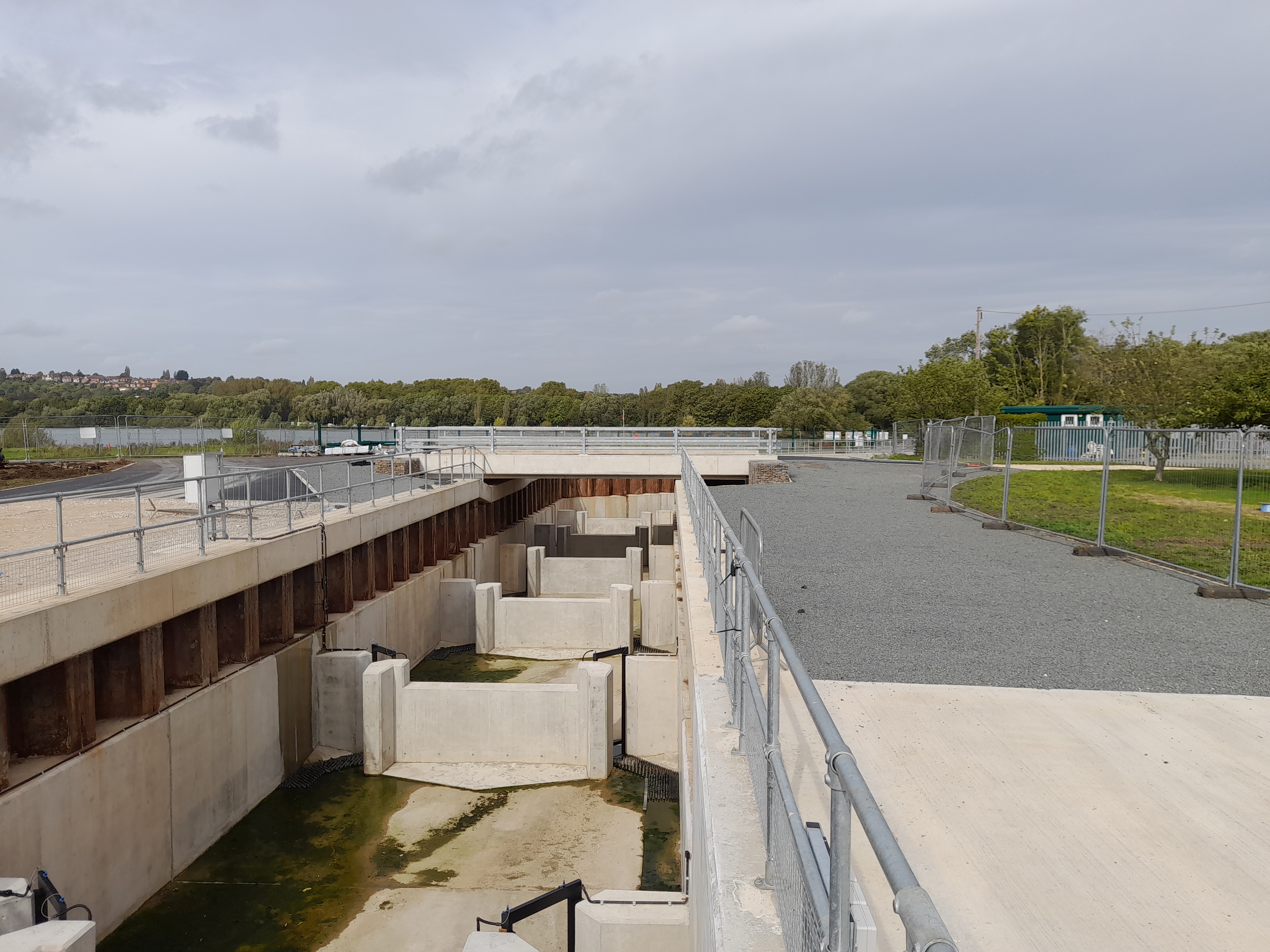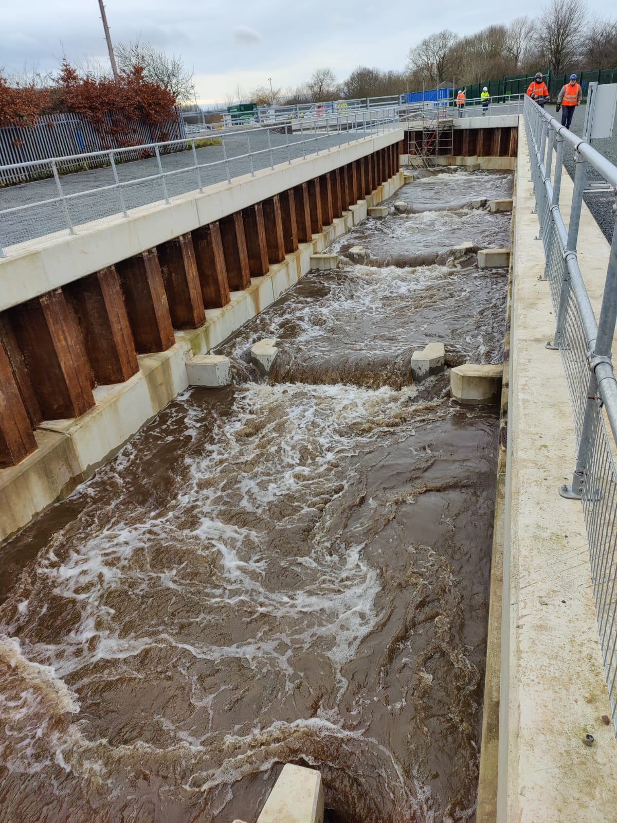 The fish pass is now over 90% complete, with all major works finished. Minor works remain to fit a final supporting beam to the radial gate, after which the pass can be opened to allow full commissioning.