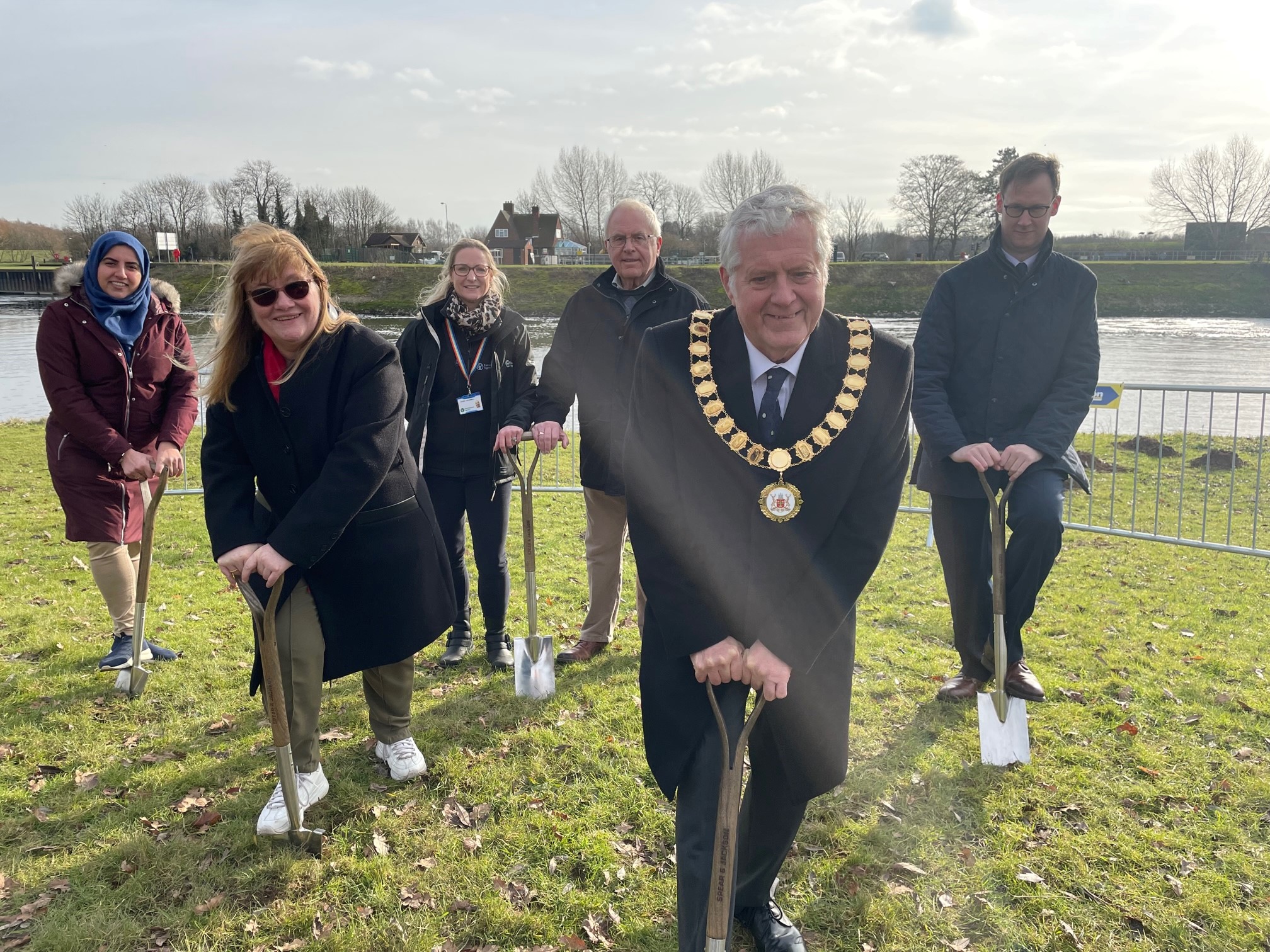 On the 28 January, a ground-breaking event was held to celebrate the start of construction of the fish pass. The Environment Agency Area Director, Louise Cresswell was joined by Tom Randall MP along with the Lord Mayor of Nottingham, Cllr David Trimble, David Kent (Trent Joint Anglers Council) and representatives from Nottingham City Council.