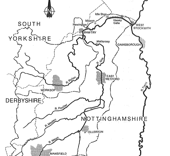 The River Idle is a 30 mile long river in Nottinghamshire. It begins at the confluence of the River Maun and River Meden, near Markham Moor. From there, it flows north through Retford and Bawtry before entering the River Trent at West Stockwith. The Idle originally flowed into the River Don at Hatfield Chase, but was diverted eastwards from Idle Stop (between Misson and Misterton) by drainage engineers in 1628. The river is largely rural in character, although it passes through the centre of Retford and skirts the south-eastern fringe of Bawtry. Land levels vary from 2.4m AOD in the lower reaches to 183m AOD in the south-west of the catchment. AOD stands for above ordnance datum, where the datum is usually the average sea level.