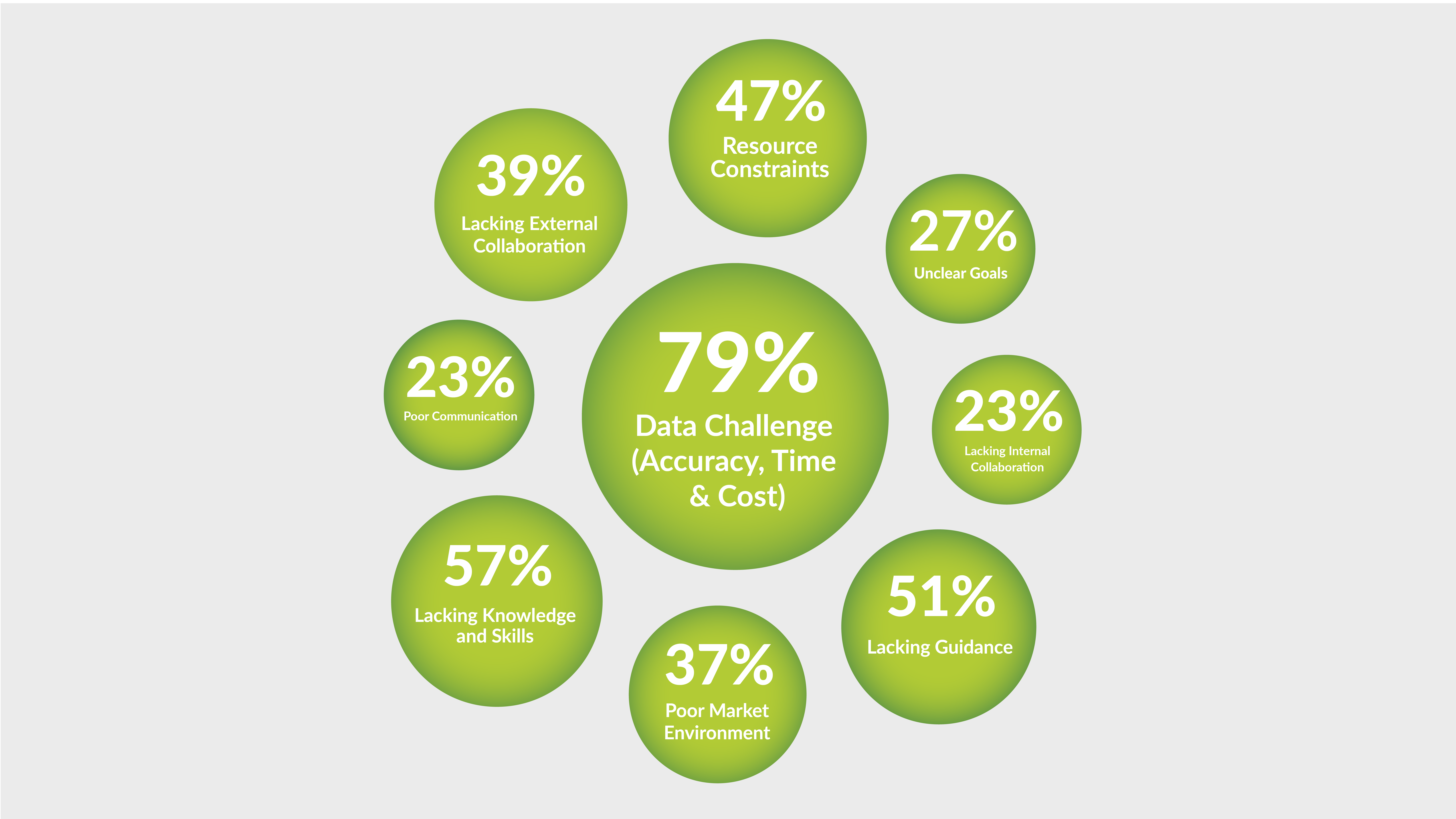 - 79% of 101 surveyed food businesses indicate that data challenge is the biggest barrier to measuring their environmental performance of businesses of all sizes