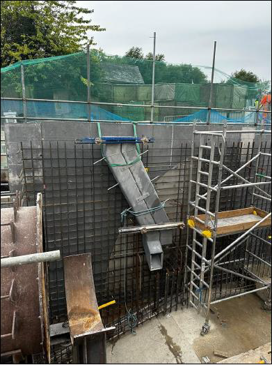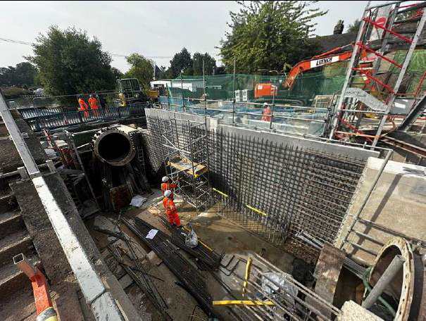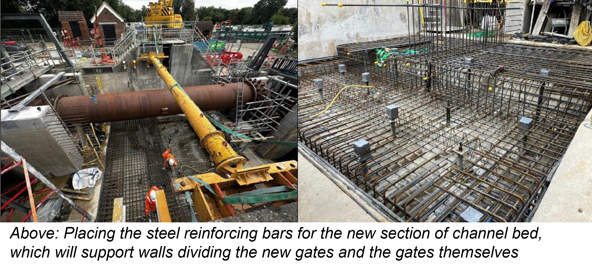 Above: The steel reinforcing bars being placed for the middle wall to separate two new sluice gates.