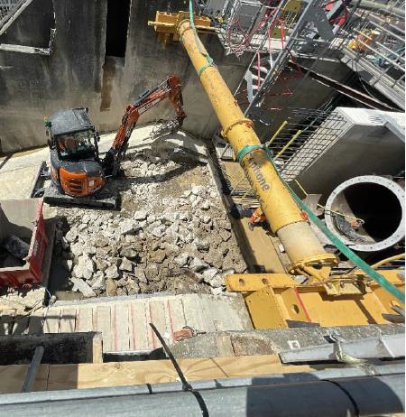 Above: Breaking out the redundant section of channel bed