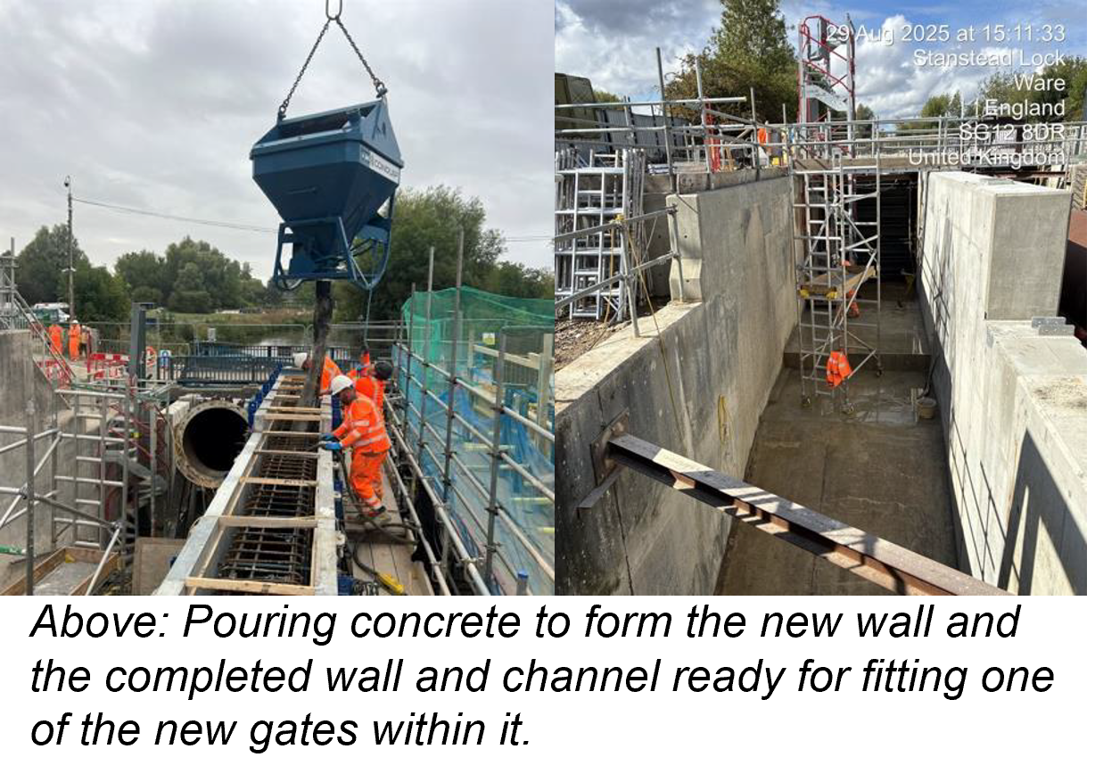 The new section of channel bed has been cast with concrete allowing us to proceed with preparing and building the middle wall that will separate the two new gates.